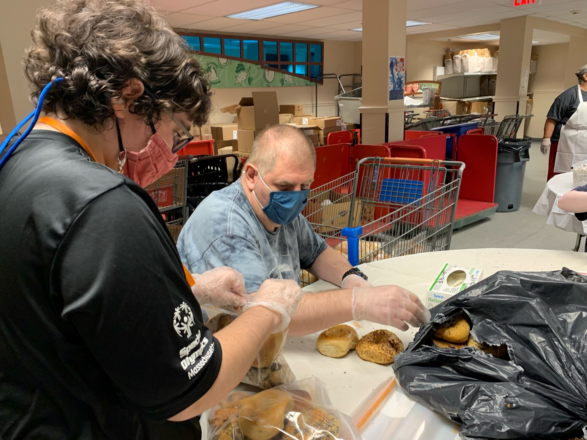 A variety of volunteer opportunities are keeping us busy in the community! We love helping out at the MetroWest Humane Society, a new volunteer site we began after our return from closure, where we sometimes get to care for the adorable kittens! We continue to add more opportunities to our weekly volunteer schedule at Habitat for Humanity and the Upton Food Pantry, where we package bagels.